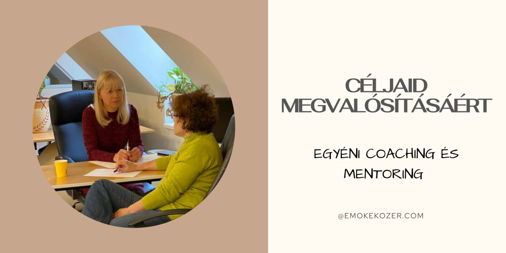 Személyes figyelem, egyénre szabott megoldás Neked, Veled coaching és mentoring módszerekkel, amellyel vezetői szerepedben való fejlődésedben, önazonos működésedben, a munka és a magánélet összeegyeztetésében és egyéb vállalkozói és személyes céljaid megvalósításában támogatlak.